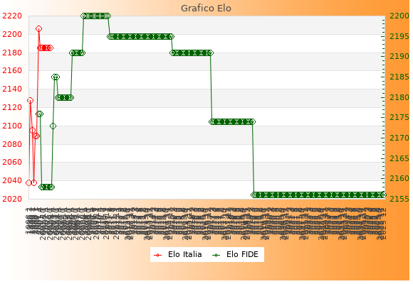 Elo FIDE: 2156    Migliore: 2200  (Gennaio 2011)    Peggiore: 2156  (Aprile 2019)