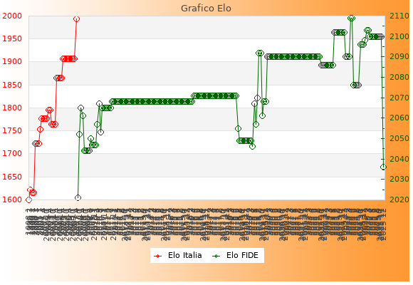 Elo FIDE: 2036    Migliore: 2109  (Maggio 2024)    Peggiore: 2021  (Luglio 2007)