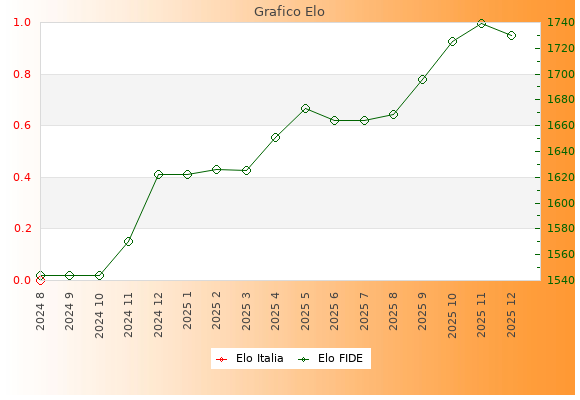 Elo FIDE: 1730    Migliore: 1739  (Novembre 2025)    Peggiore: 1544  (Agosto 2024)