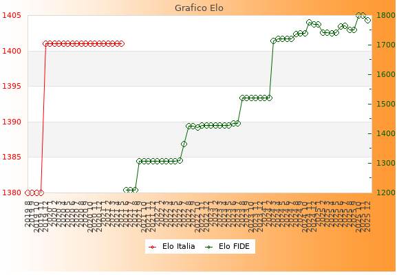 Elo FIDE: 1784    Migliore: 1800  (Novembre 2025)    Peggiore: 1209  (Giugno 2021)
