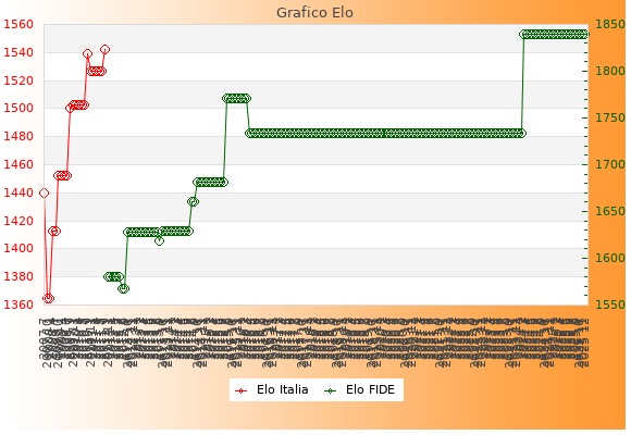 Elo FIDE: 1840    Migliore: 1840  (Dicembre 2025)    Peggiore: 1567  (Agosto 2012)