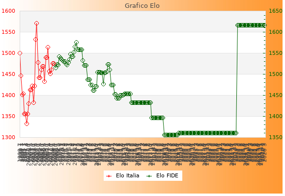 Elo FIDE: 1616    Migliore: 1616  (Marzo 2026)    Peggiore: 1356  (Ottobre 2018)