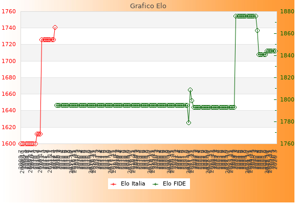 Elo FIDE: 1844    Migliore: 1876  (Marzo 2025)    Peggiore: 1779  (Ottobre 2021)
