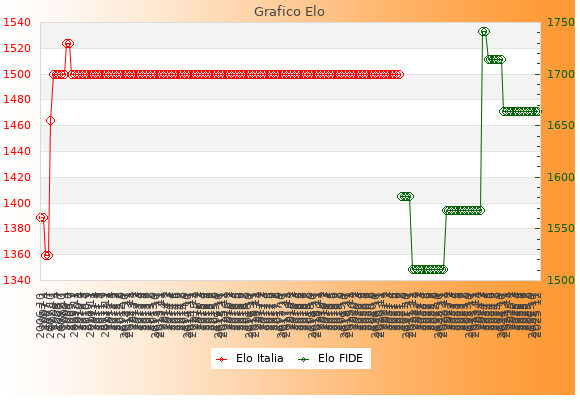 Elo FIDE: 1664    Migliore: 1741  (Aprile 2024)    Peggiore: 1511  (Dicembre 2021)