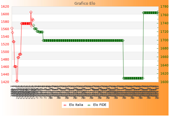 Elo FIDE: 1765    Migliore: 1765  (Dicembre 2025)    Peggiore: 1609  (Ottobre 2021)
