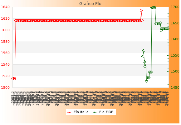 Elo FIDE: 1632    Migliore: 1699  (Aprile 2024)    Peggiore: 1470  (Agosto 2023)