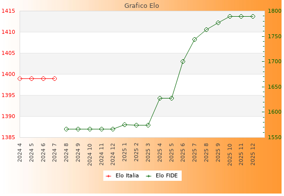 Elo FIDE: 1789    Migliore: 1789  (Dicembre 2025)    Peggiore: 1566  (Agosto 2024)