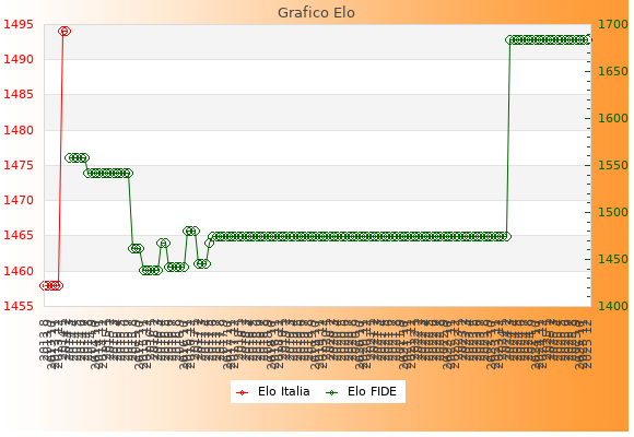 Elo FIDE: 1684    Migliore: 1684  (Dicembre 2025)    Peggiore: 1438  (Novembre 2015)