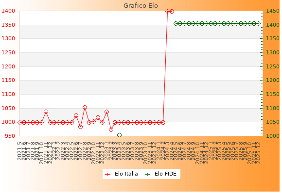 Elo FIDE: 1404    Migliore: 1404  (Dicembre 2025)    Peggiore: 1003  (Aprile 2023)