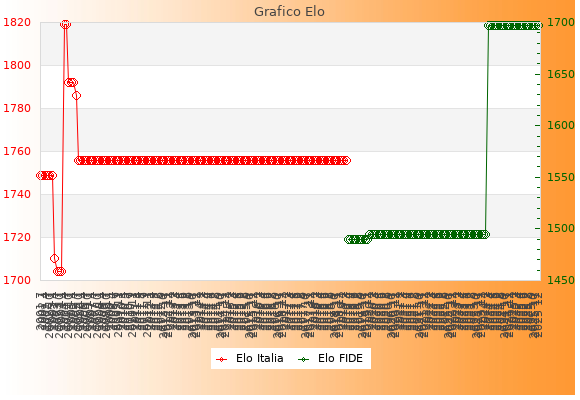 Elo FIDE: 1697    Migliore: 1697  (Dicembre 2025)    Peggiore: 1490  (Aprile 2019)