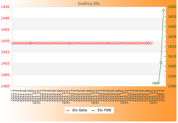 Elo FIDE: 1657    Migliore: 1657  (Marzo 2026)    Peggiore: 1583  (Novembre 2025)
