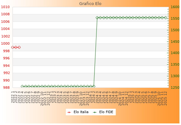 Elo FIDE: 1554    Migliore: 1554  (Dicembre 2025)    Peggiore: 1256  (Aprile 2022)