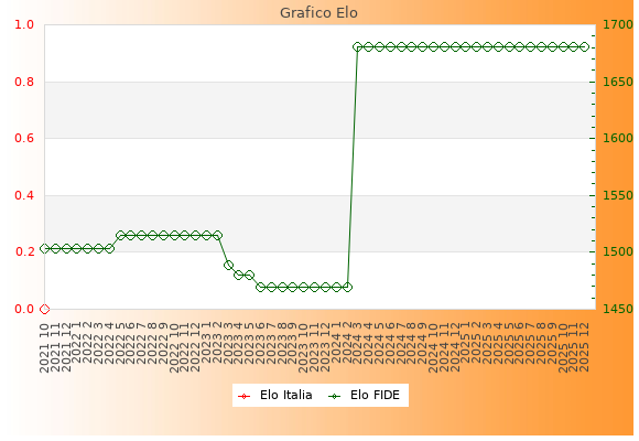Elo FIDE: 1681    Migliore: 1681  (Dicembre 2025)    Peggiore: 1469  (Giugno 2023)