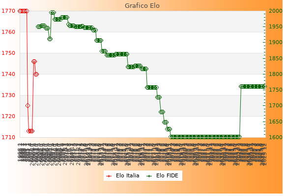 Elo FIDE: 1761    Migliore: 1996  (Luglio 2007)    Peggiore: 1601  (Gennaio 2019)