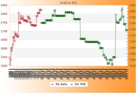 Elo FIDE: 1738    Migliore: 1810  (Marzo 2025)    Peggiore: 1625  (Agosto 2023)