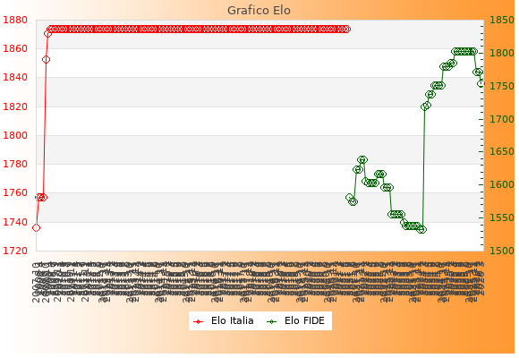 Elo FIDE: 1754    Migliore: 1803  (Dicembre 2025)    Peggiore: 1532  (Gennaio 2024)