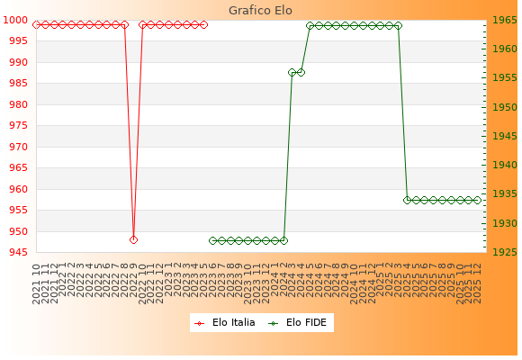 Elo FIDE: 1934    Migliore: 1964  (Marzo 2025)    Peggiore: 1927  (Giugno 2023)