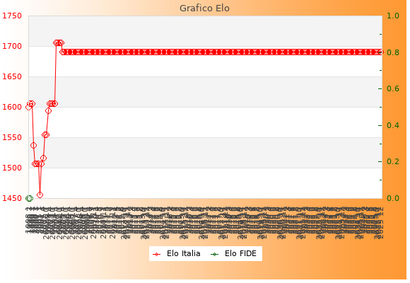 Elo Italia: 1691    Migliore: 1706  (Gennaio 2005)    Peggiore: 1456  (Luglio 2001)