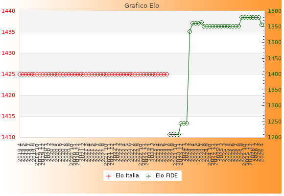 Elo FIDE: 1556    Migliore: 1580  (Marzo 2026)    Peggiore: 1209  (Agosto 2023)