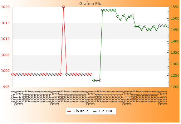 Elo FIDE: 1467    Migliore: 1537  (Luglio 2024)    Peggiore: 1229  (Dicembre 2023)