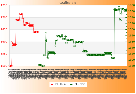 Elo FIDE: 1763    Migliore: 1774  (Novembre 2024)    Peggiore: 1580  (Marzo 2013)