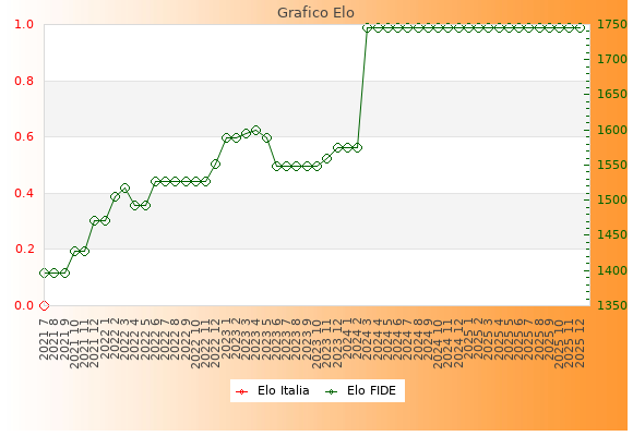 Elo FIDE: 1745    Migliore: 1745  (Dicembre 2025)    Peggiore: 1397  (Luglio 2021)