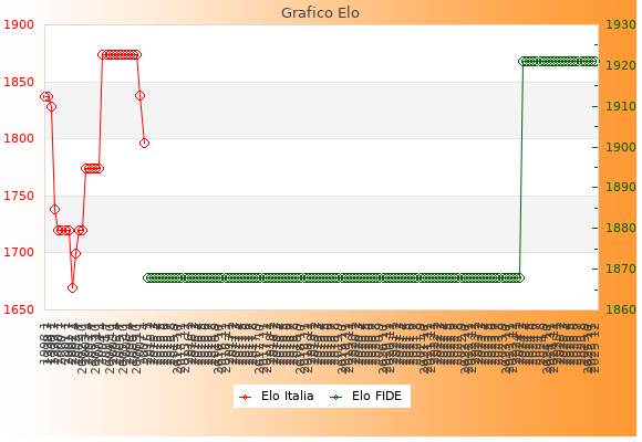 Elo FIDE: 1921    Migliore: 1921  (Dicembre 2025)    Peggiore: 1868  (Gennaio 2015)
