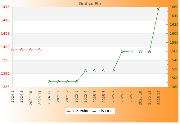 Elo FIDE: 1657    Migliore: 1657  (Dicembre 2025)    Peggiore: 1492  (Dicembre 2024)