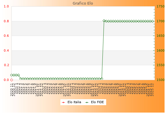 Elo FIDE: 1700    Migliore: 1702  (Marzo 2024)    Peggiore: 1504  (Marzo 2021)