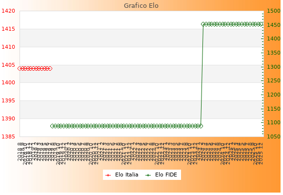 Elo FIDE: 1453    Migliore: 1453  (Dicembre 2025)    Peggiore: 1089  (Agosto 2019)