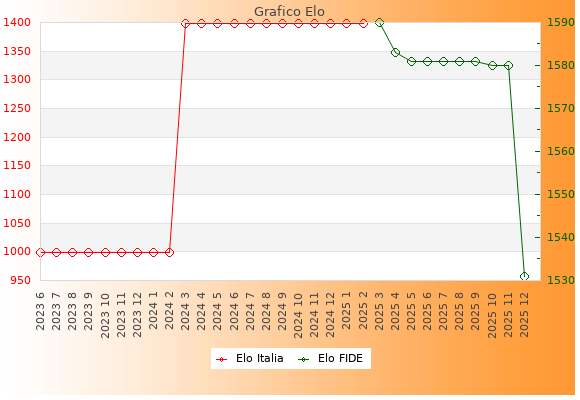 Elo FIDE: 1531    Migliore: 1590  (Marzo 2025)    Peggiore: 1531  (Dicembre 2025)