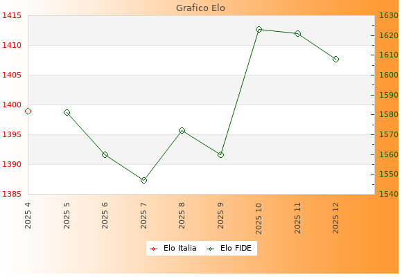 Elo FIDE: 1608    Migliore: 1623  (Ottobre 2025)    Peggiore: 1547  (Luglio 2025)