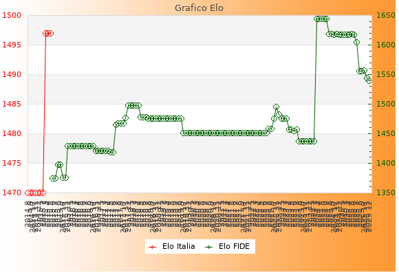 Elo FIDE: 1540    Migliore: 1644  (Luglio 2024)    Peggiore: 1374  (Giugno 2015)