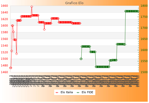 Elo FIDE: 1775    Migliore: 1775  (Dicembre 2025)    Peggiore: 1524  (Febbraio 2020)