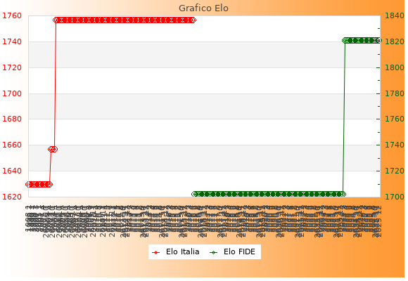 Elo FIDE: 1821    Migliore: 1821  (Dicembre 2025)    Peggiore: 1702  (Giugno 2016)