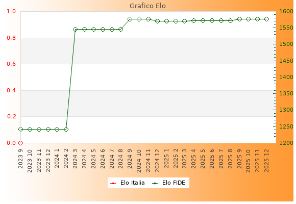 Elo FIDE: 1576    Migliore: 1576  (Dicembre 2025)    Peggiore: 1242  (Settembre 2023)