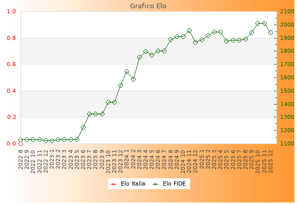 Elo FIDE: 1940    Migliore: 2011  (Novembre 2025)    Peggiore: 1122  (Dicembre 2022)