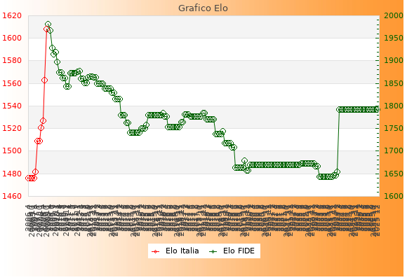 Elo FIDE: 1793    Migliore: 1982  (Gennaio 2009)    Peggiore: 1643  (Aprile 2023)