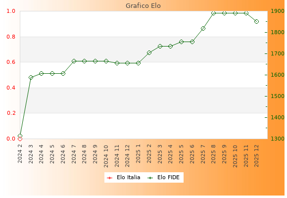 Elo FIDE: 1851    Migliore: 1891  (Novembre 2025)    Peggiore: 1313  (Febbraio 2024)