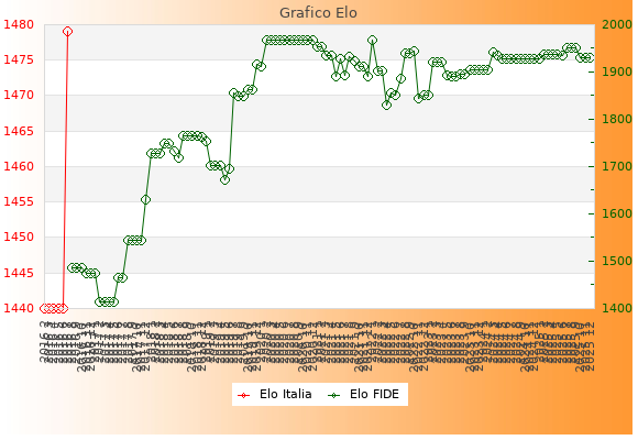 Elo FIDE: 1931    Migliore: 1968  (Gennaio 2022)    Peggiore: 1415  (Febbraio 2017)