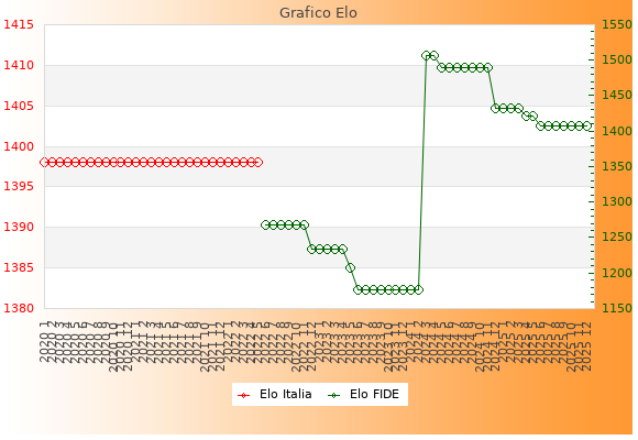Elo FIDE: 1408    Migliore: 1506  (Aprile 2024)    Peggiore: 1177  (Giugno 2023)