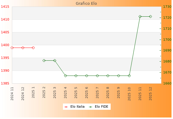 Elo FIDE: 1721    Migliore: 1721  (Dicembre 2025)    Peggiore: 1667  (Aprile 2025)