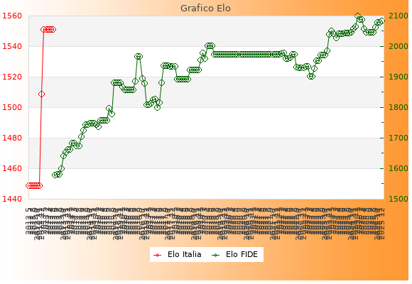 Elo FIDE: 1464    Migliore: 1464  (Dicembre 2025)    Peggiore: 1107  (Febbraio 2020)