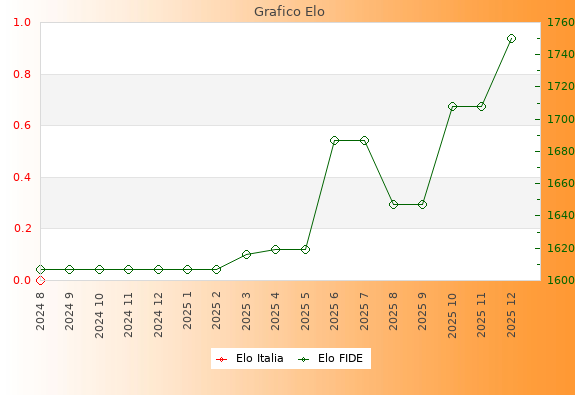 Elo FIDE: 1750    Migliore: 1750  (Dicembre 2025)    Peggiore: 1607  (Agosto 2024)