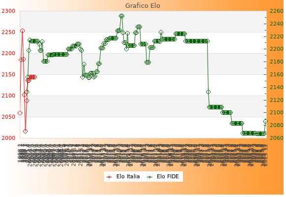 Elo FIDE: 2086    Migliore: 2252  (Aprile 2015)    Peggiore: 2067  (Aprile 2025)