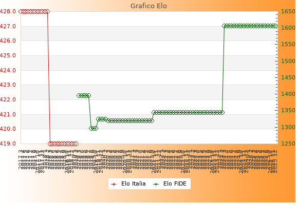 Elo FIDE: 1606    Migliore: 1606  (Dicembre 2025)    Peggiore: 1296  (Agosto 2019)