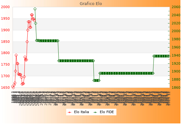 Elo FIDE: 1938    Migliore: 2055  (Ottobre 2007)    Peggiore: 1878  (Aprile 2017)