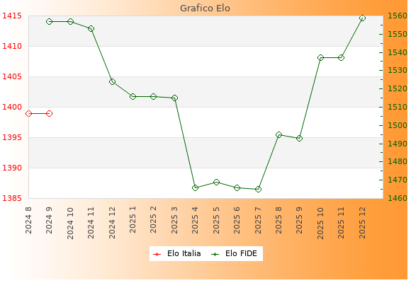 Elo FIDE: 1559    Migliore: 1559  (Dicembre 2025)    Peggiore: 1465  (Luglio 2025)