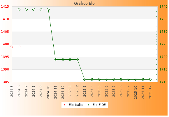 Elo FIDE: 1711    Migliore: 1739  (Ottobre 2024)    Peggiore: 1711  (Marzo 2025)
