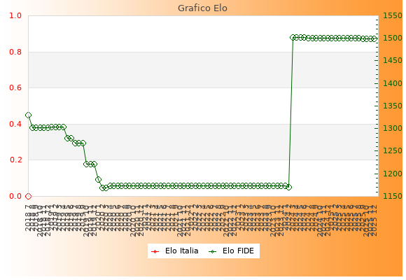 Elo FIDE: 1499    Migliore: 1502  (Giugno 2024)    Peggiore: 1168  (Febbraio 2020)